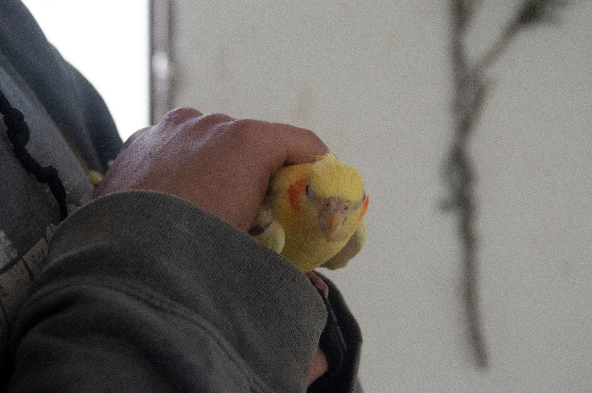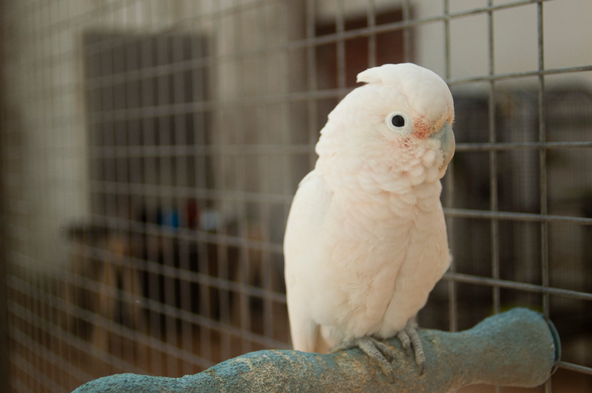jaula: pequeña, redonda, con 1 solo palo donde apoyarse. Sin salir a volar en ningún momento.